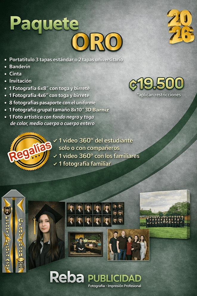 Celebra el logro de tus estudiantes con paquetes diseñados para crear recuerdos eternos: portatítulos, fotografía profesional, videos 360º y atención personalizada para colegios, escuelas y eventos de premiación en toda Costa Rica.